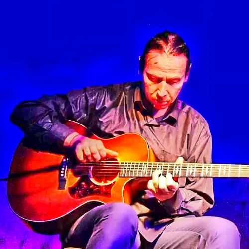 Alexey lebt seit kurzem als ukrainischer Flüchtling in Hamburg und hat im Kreis Düren einige Kontakte von früheren Besuchen. Er hat in seiner Heimat Kiev Musik studiert und ist Gewinner des internationalen Weltwettbewerbs „World Folk Vision“ 2020 und arbeitete in der Ukraine als Gitarrenvirtuose, Komponist, Sänger, Dichter und Schriftsteller.